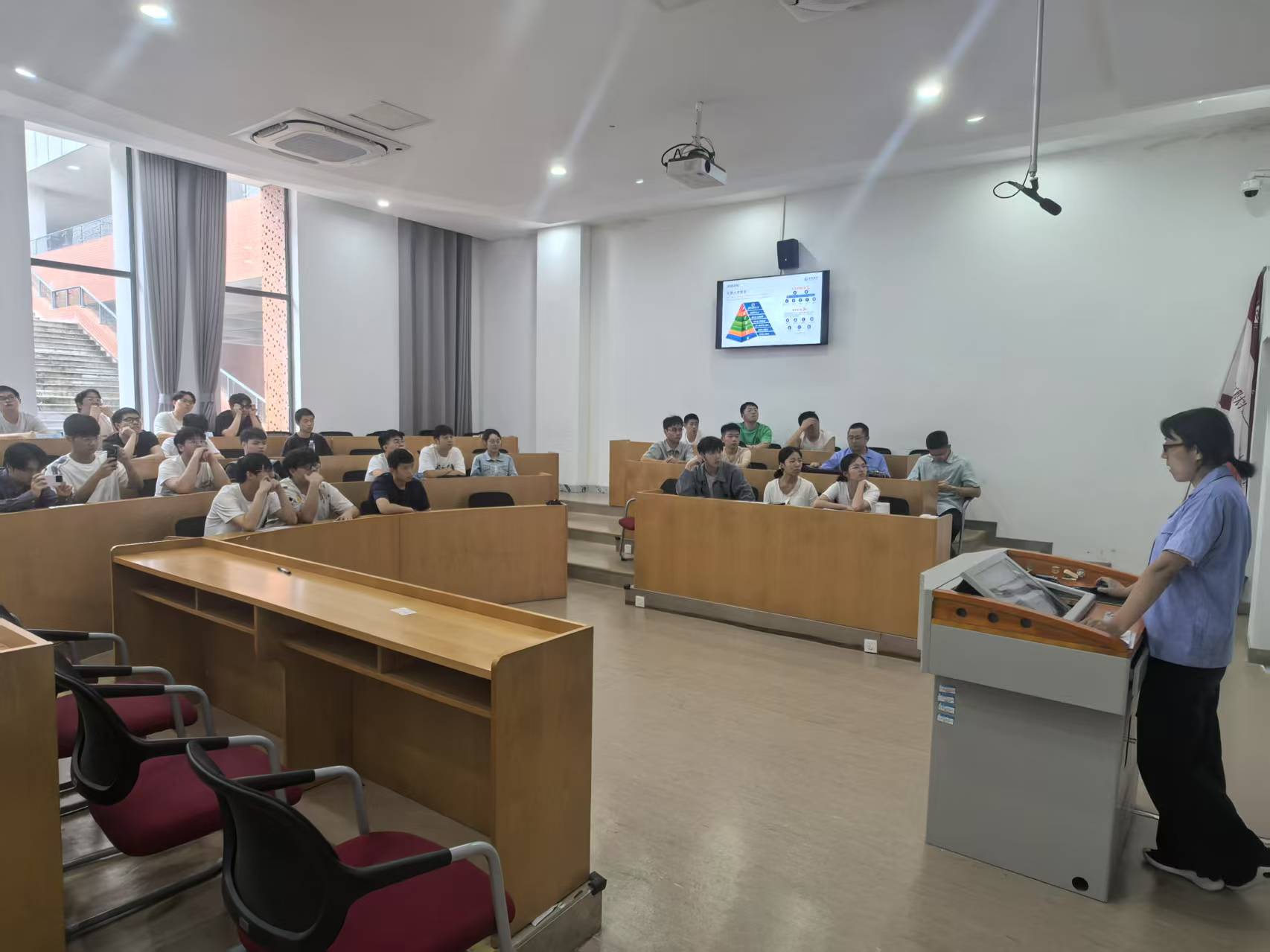 6月23日,Bl小说 在国际工程师学院X103教室开展2026届“中鼎企业冠名班”宣讲活动,学院成果转化中心主任蔡劲草,安徽中鼎密封件股份有限公司人力资源管理中心经理王静、招聘经理郭宜侃,辅导员孙志鹏以及40余名2026届毕业生参加了宣讲会。
