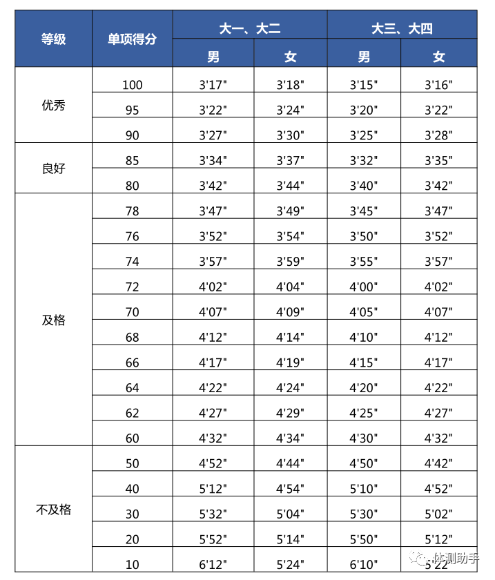 2. 中长跑 (男生1000米,女生800米,单位:分·秒)