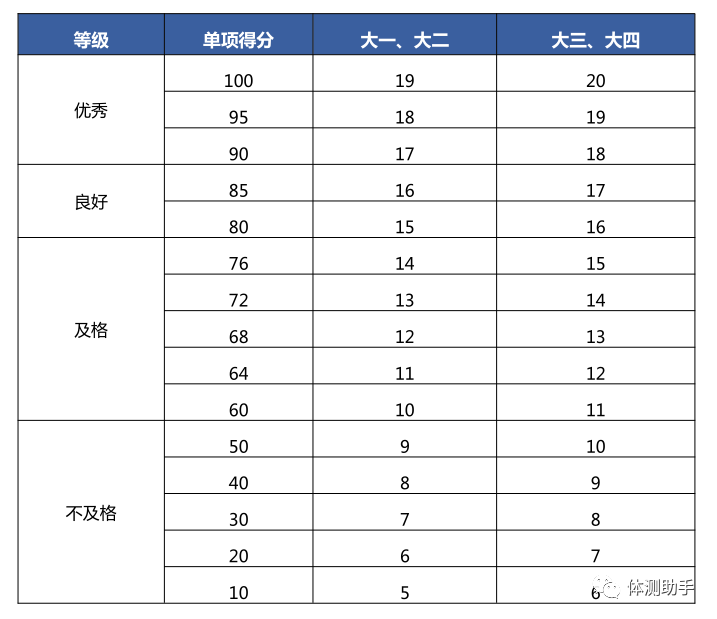 《国家学生体质健康标准》是测量学生体质健康状况和锻炼效果的评价标准,是国家对不同年龄段学生体质健康方面的基本要求,是学生体质健康的个体评价标准。以下为大学生体测各项目相应的评价指标。