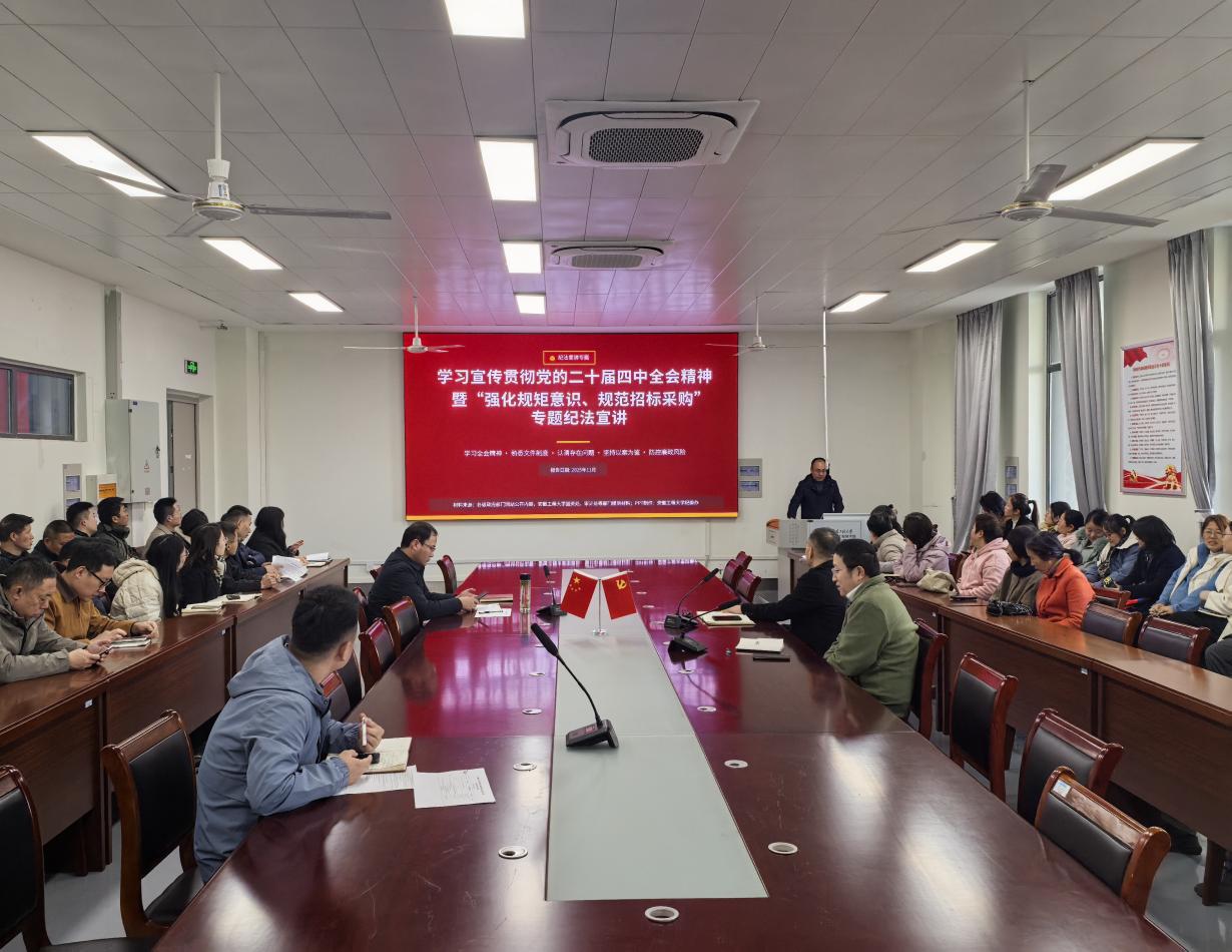 为深入学习宣传贯彻党的二十届四中全会精神,切实强化教职工招标采购领域纪法意识,有效防范廉政风险,11月19日,校纪委案管审理室主任丁雨晴应邀到Bl小说 作《学习宣传贯彻党的二十届四中全会精神暨“强化规矩意识、规范招标采购”》专题纪法宣讲,学院全体教职工参加宣讲会。宣讲会由学院党委书记魏长顺主持。