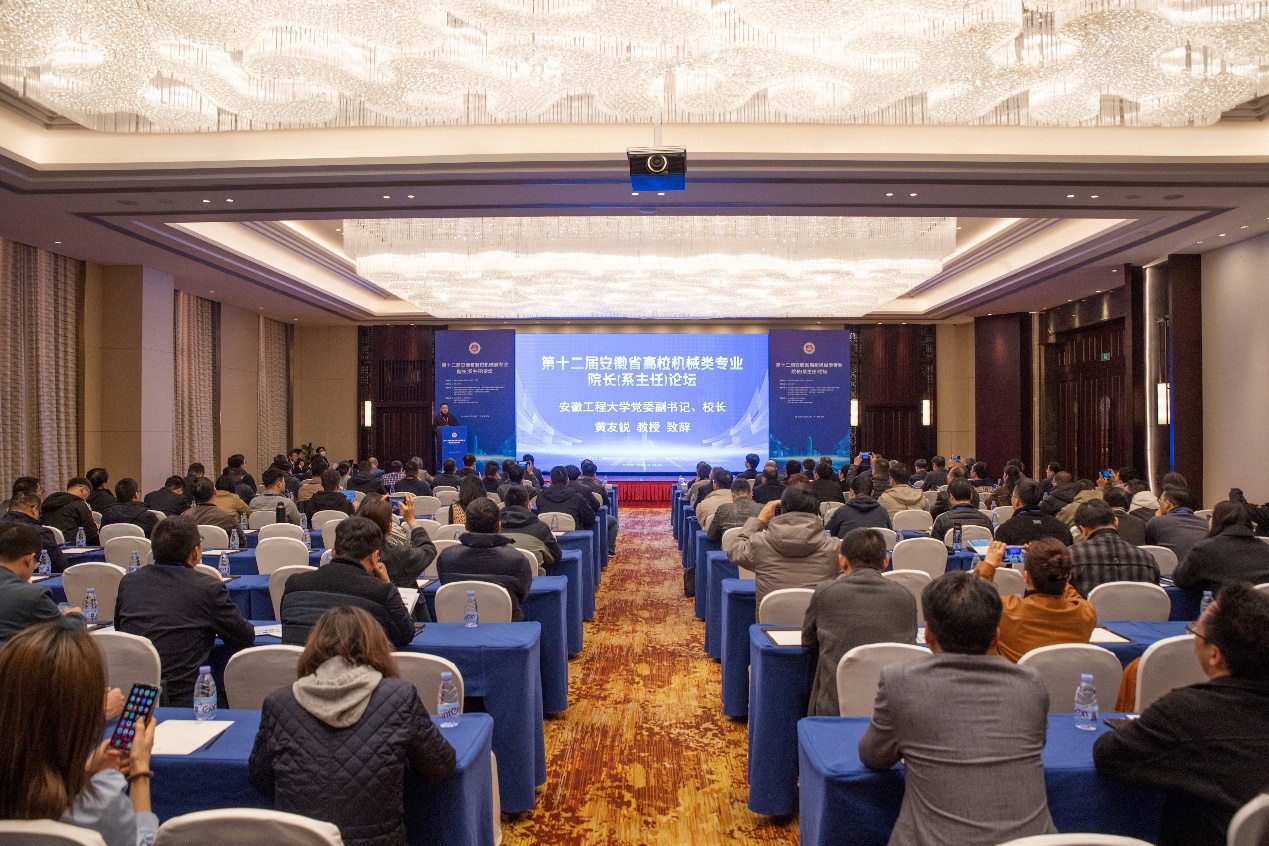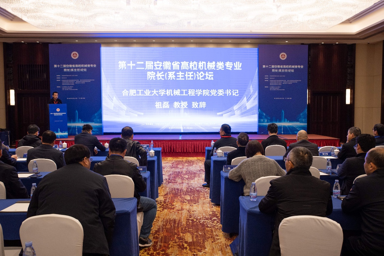 11月21-23日,第十二届安徽省高校机械类专业院长(系主任)论坛在Bl小说 举办。论坛以“学科交叉融合与高质量发展”为主题,围绕机械工程学科学位点建设、一流学科、学科专业优化调整等议题展开深度研讨。来自省内外高校机械类专业院长(系主任)、骨干教师以及企业人员180余人参加论坛。校党委副书记、校长黄友锐教授出席论坛开幕式并致辞,副校长王成军教授主持论坛开幕式。