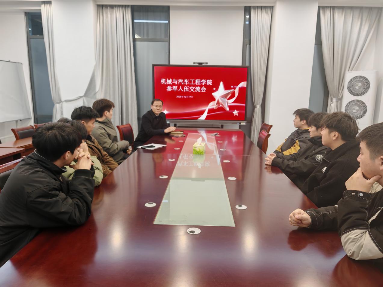 据悉,此次参军入伍报名学生交流会标志着学院2026年征兵工作正式开始,学院将持续动员、跟踪报名学生的进展,助力他们顺利完成学业,养成积极健康的身心和体魄,为国防事业输送更多优秀的机械学子。