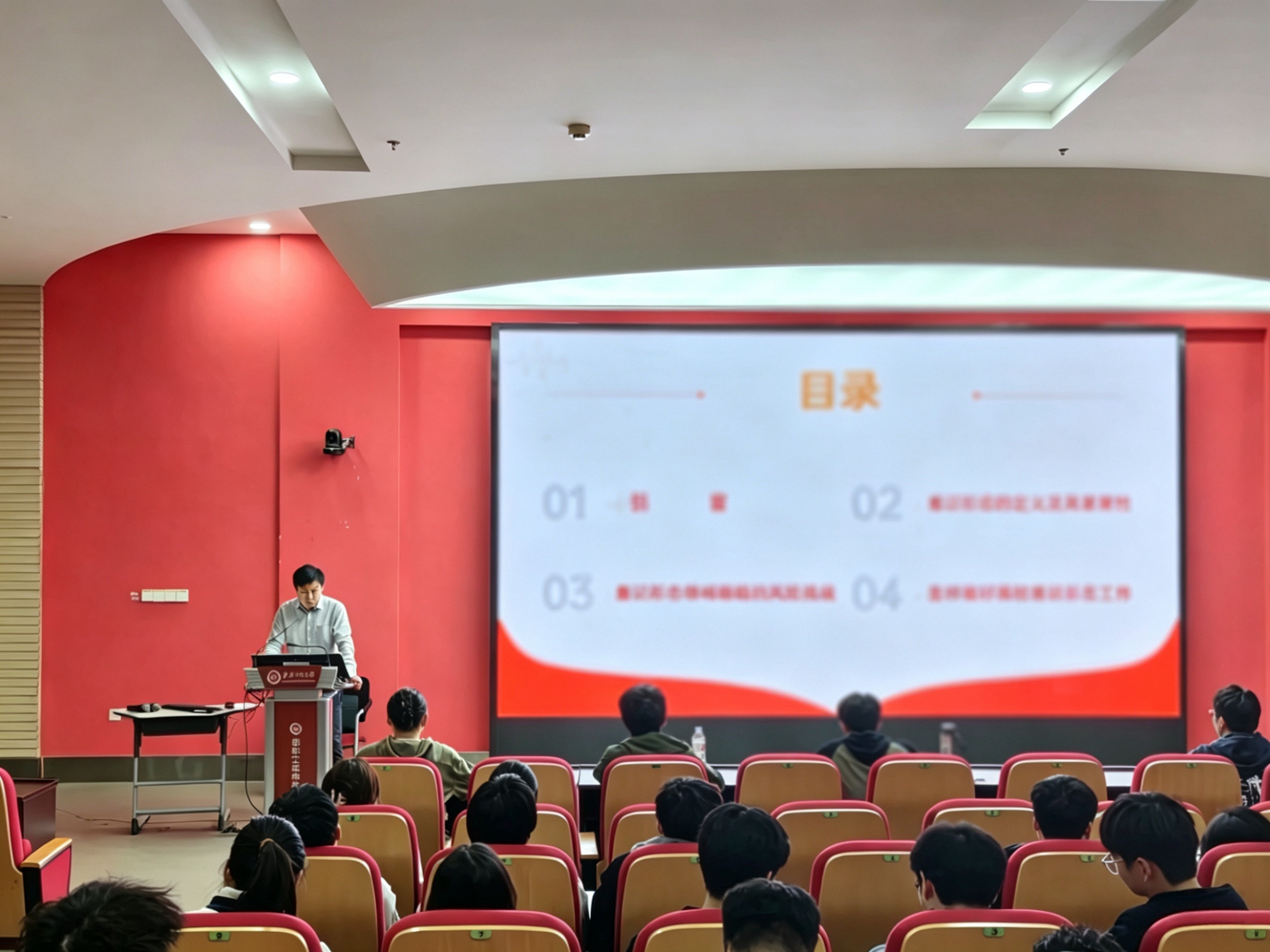 3月30日晚,学院党委书记魏长顺以《树立和践行正确政绩观 让青春在强国建设中绽放光彩》为题作专题报告。魏长顺从深刻认识树立和践行正确政绩观的重大意义、准确把握核心要义、青年党员要带头践行等方面展开讲解。他表示,政绩观本质是世界观、人生观、价值观的集中体现,关系党的形象和执政根基。他结合浙江“千万工程”与秦岭违建别墅事件等正反案例,强调“为民造福是最大政绩”“真干才能真出业绩”。报告还列举了多位学生党员在科研、服务中践行正确政绩观的生动事例,勉励全体预备党员扣好“人生第一粒扣子”,把个人理想融入党和人民事业,在强国建设中绽放青春光彩。