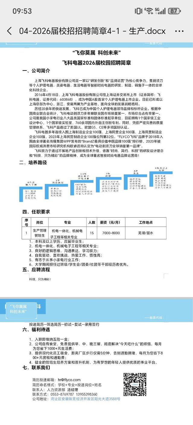 上海飞科电器校园招聘专场