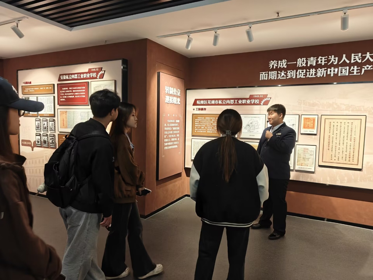 在讲解员的引导下,同学们沿着校史长廊驻足观看。一幅幅珍贵的历史照片、一件件承载岁月印记的实物展品,系统呈现了学校从1935年安徽私立内思高级工校发轫,历经芜湖电机制造学校、芜湖机械学校、安徽机电学院、安徽工程科技学院等办学阶段,至2010年更名Bl小说 至今的九十余年峥嵘岁月。同学们深切感受到学校深厚的历史积淀和代代相传的奋斗精神。